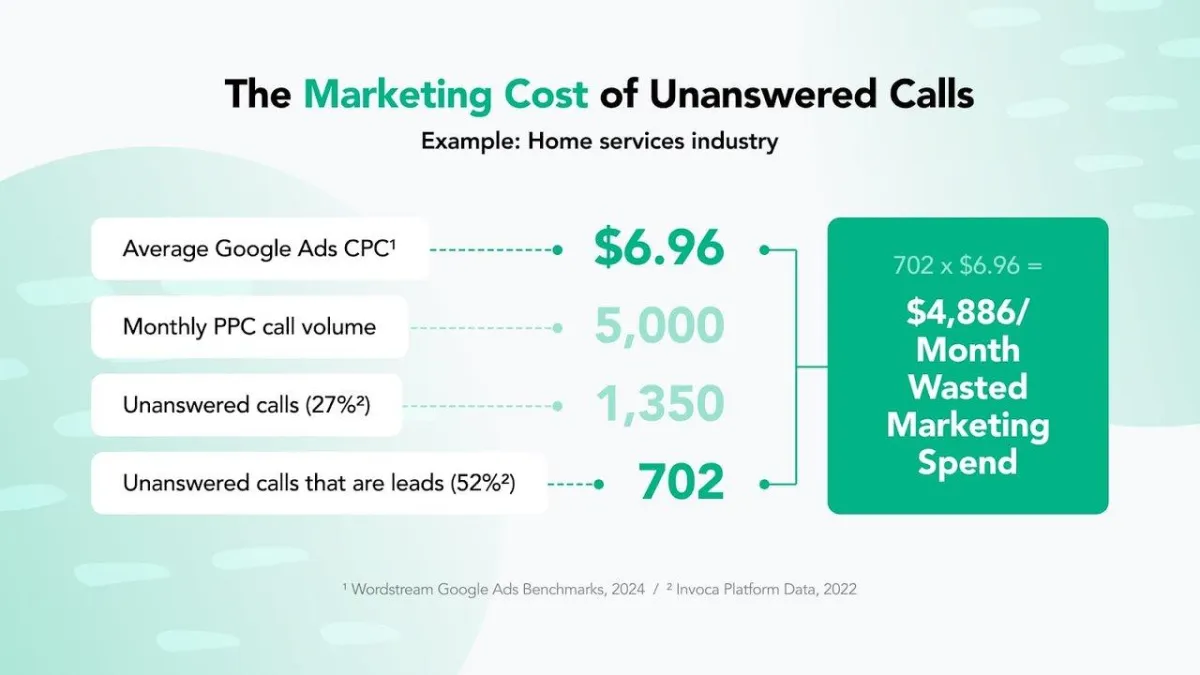 Lost revenue per year: $60,000–$170,000 for the average small to mid-sized business from missed calls alone.